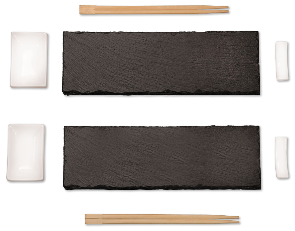 KESPER Sushi set 8 ks, 2x břidlice 30x10cm, 2x keramické misky, 2x hůlky, 2x držák