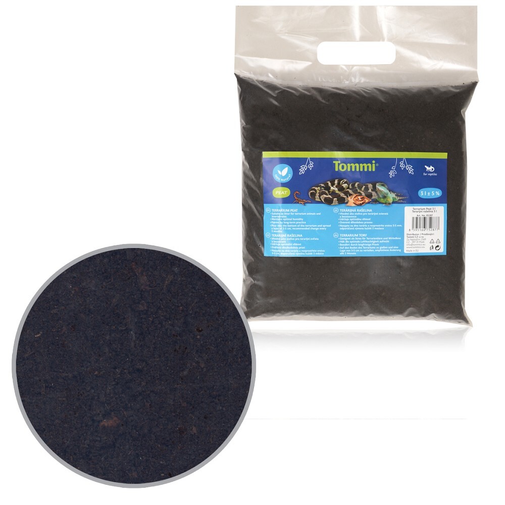 Vhodná pro zvířata obývající spodní patro tropického pralesa (žáby, pavouci, šneci, obojživelníci, bezobratlí, chameleoni, gekoni, hadi atd.).• 100% přírodní, těžená rašelina• Výborně saje a drží vlhkost • Lze použít i pro pěstování rostlin• Nutné udržovat vlhkouPoužití: Nasypte na dno terária a rozprostřete vrstvu 3-5 cm (doporučená výměna co 3 měsíce). Samostatně nebo lze smíchat s jinými substráty (písek, lignocel, chipsy).Balení: 3 litry