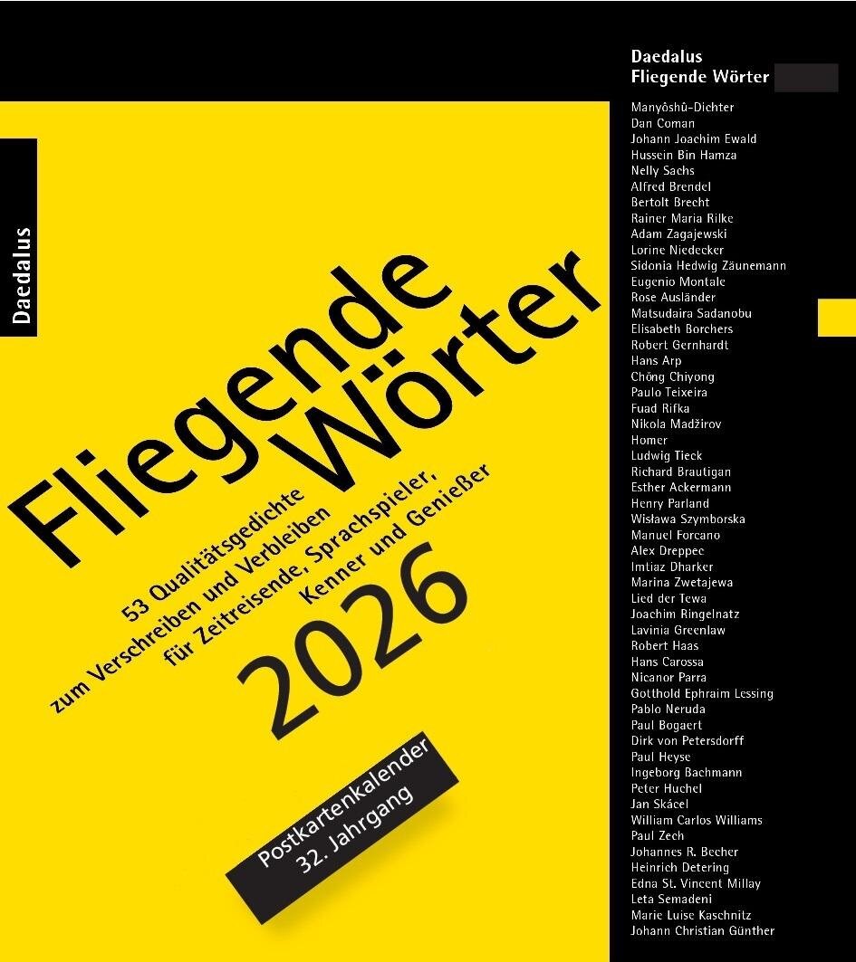 Fliegende Wörter 2026. Postkartenkalender (německy)