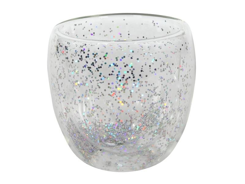 SKLENICE S DVOJÍM SKLEM S KONFETY 250 ML, STŘÍBRNÁ