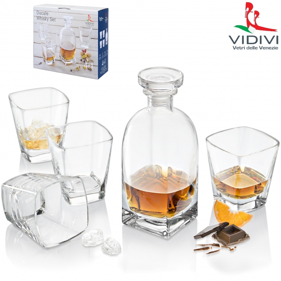 VIDIVI, sada na whisky DUCALE, 4 x sklenice 0,33 l plus karafa 0,7 l