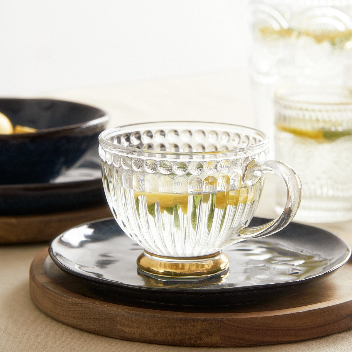 Filiżanka BARREL szklana w paski ze złotą nóżką 0,36 L