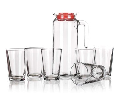 7dílný džbánový set SAHRA obsahuje džbán 1 l s plastovým červeným víkem a 6 sklenic o objemu 205 ml. prečítať celé
