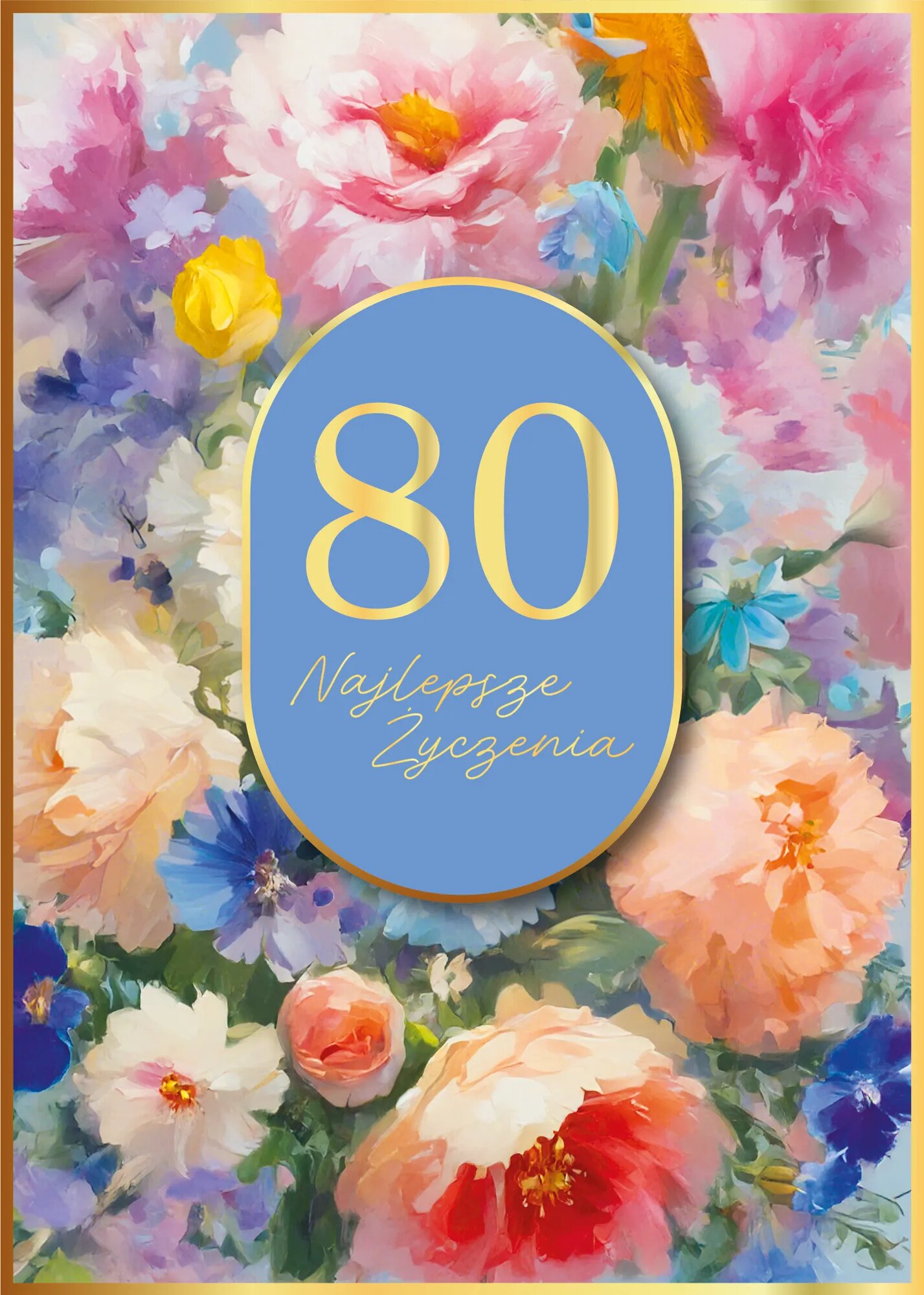 Karnet B6 80 Urodziny malowane kwiaty GM-1181