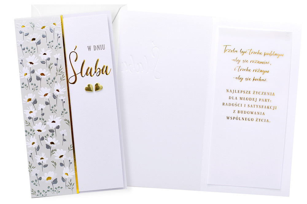 Kartka z okazji Ślubu z serii Passion Moments PM-436Każda kartka w kolekcji Passion Moments to małe arcydzieło - wyjątkowe i niepowtarzalne, piękne wizualnie. Kartki PM są bardzo bogato zdobione, a jednocześnie skromne i stylowe, cały efekt tkwi w detalach i doskonałym wykonaniu. W zależności od...