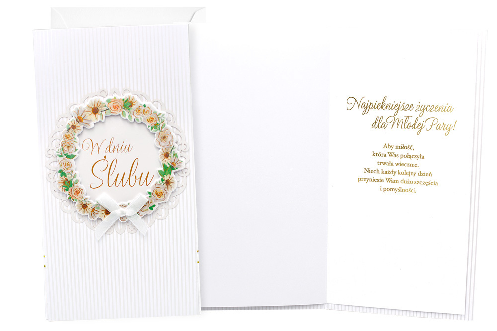 Kartka z okazji Ślubu z serii Passion Moments PM-433Każda kartka w kolekcji Passion Moments to małe arcydzieło - wyjątkowe i niepowtarzalne, piękne wizualnie. Kartki PM są bardzo bogato zdobione, a jednocześnie skromne i stylowe, cały efekt tkwi w detalach i doskonałym wykonaniu. W zależności od...