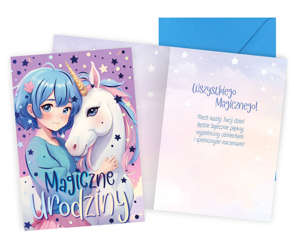 Karnet urodziny dziecięce anime, dziewczęce, jednorożec PR-562