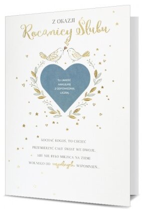 Karnet B6 Rocznica ślubu naklejane cyfry, ptaszki HM-200-1900