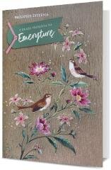 Kartka jest bogato i różnorodnie zdobiona (zależnie od wzoru: metaliczna folia, lakier perłowy,brokat, przyklejone elementy 3D - wypukłe wstawki papierowe, elementy biżuteryjne, tłoczenia).Kartka zawiera życzenia i kolorowy środek.W zestawie znajduje się koperta, kolorystycznie uzupełniająca się... prečítať celé