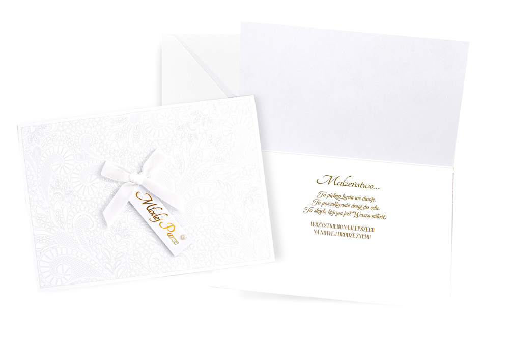 Kartka Dream Cards na Ślub DK-1331Kartka B6 z ozdobnej serii Dream Cards - nieduża, ale robi wrażenie dzięki atrakcyjnej kolorystyce i ciekawym zdobieniom.To idealny wybór łączący przyjazną cenę z jakością.Cechy szczególne:wielkość: B6, 16.6 x 11.7 cm po złożeniu,koperta: w zestawie, kolorowa,zdobienia: kolorowe, różnorodne, bogate (w zależności od wzoru: przyklejane dekoracje, elementy biżuteryjne, odstawniki, metaliczne folie, tłoczenia itp.),okazja: Ślub