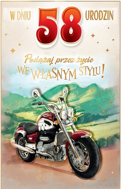 Karnet AB+ Urodziny, naklejana cyfra, motor CR-03