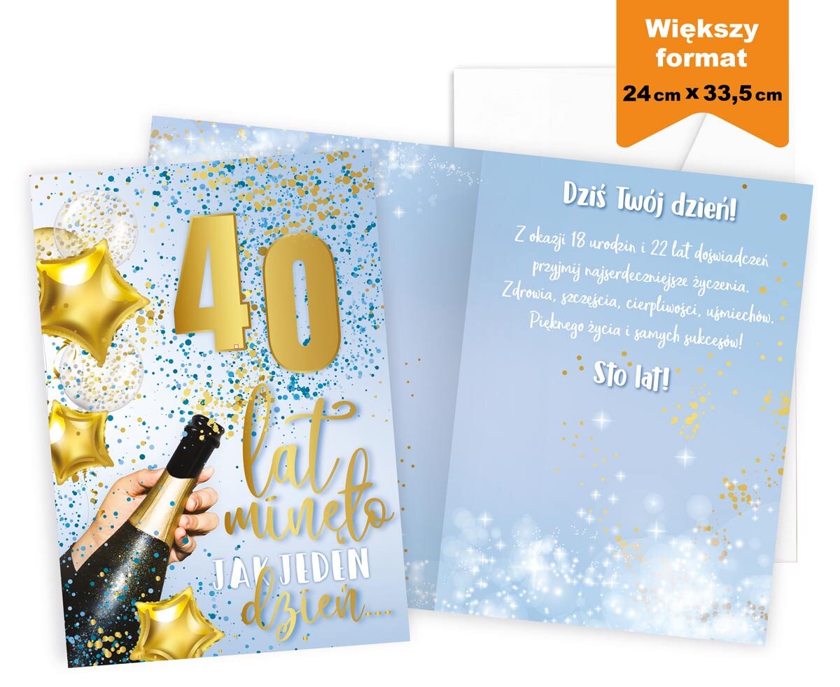 Karnet MEGA 40 Urodziny, szampan, prestige P-034 (25x35,3cm)