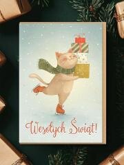 W tym roku Święty Mikołaj ma nowego pomocnika - kota! Zamiast sań wybrał stertę prezentów, a zamiast reniferów - własne wąsy i urok. Kartka w rysunkowej estetyce, ciepła i urocza, w sam raz dla wszystkich kociarzy i tych, którzy wiedzą, że najlepsze upominki zawsze przychodzą z mruczeniem....