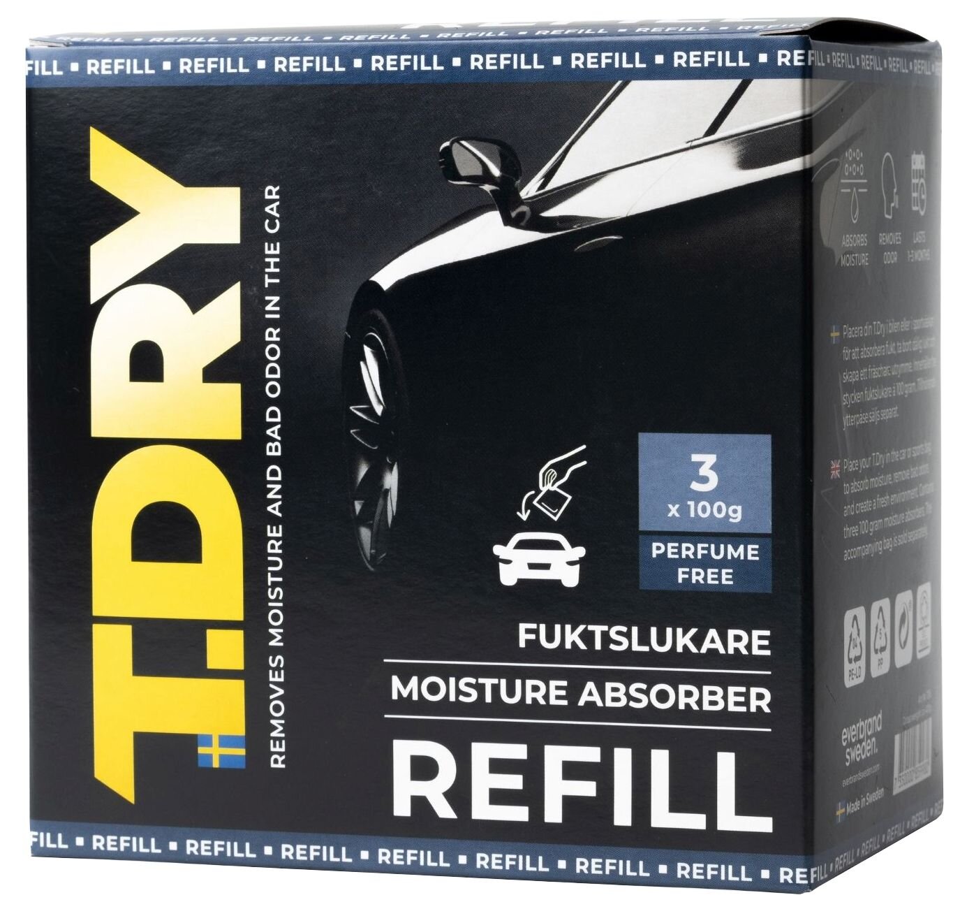Náhradní náplň T.Dry 3-Pack Refill Scent Fresh Účinná náplň do absorbéru vlhkosti do auta či sportovní tašky. T.Dry je klimaticky neutrální švédský produkt, který je vyroben z recyklovaného plastu a přírodních surovin. Odvlhčovač odstraňuje nejen vlhkost, ale i nepříjemné pachy. Balení obsahuje 3...