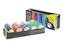 Żetony ułożone na czarnej, plastikowej tacy. Całość zapakowana w efektowny karton.