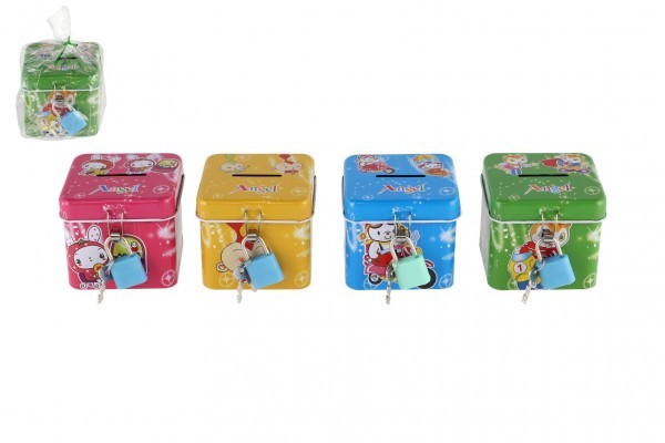 Pokladnička se zámkem plechová kostka 7x6cm 4 barvy-1 kus