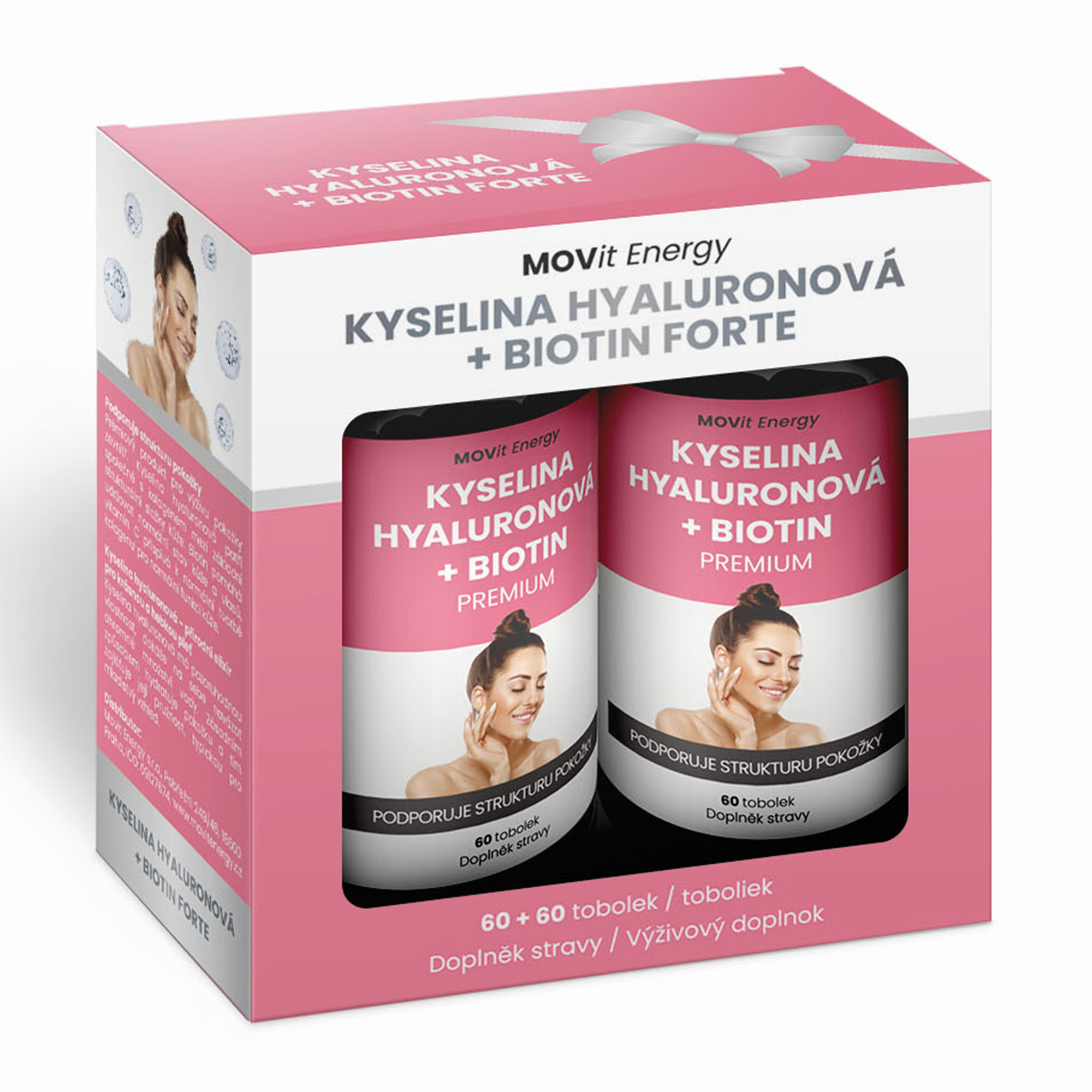 MOVit Energy Dárkový balíček Kyselina hyaluronová + Biotin Forte 60+60 kapslí