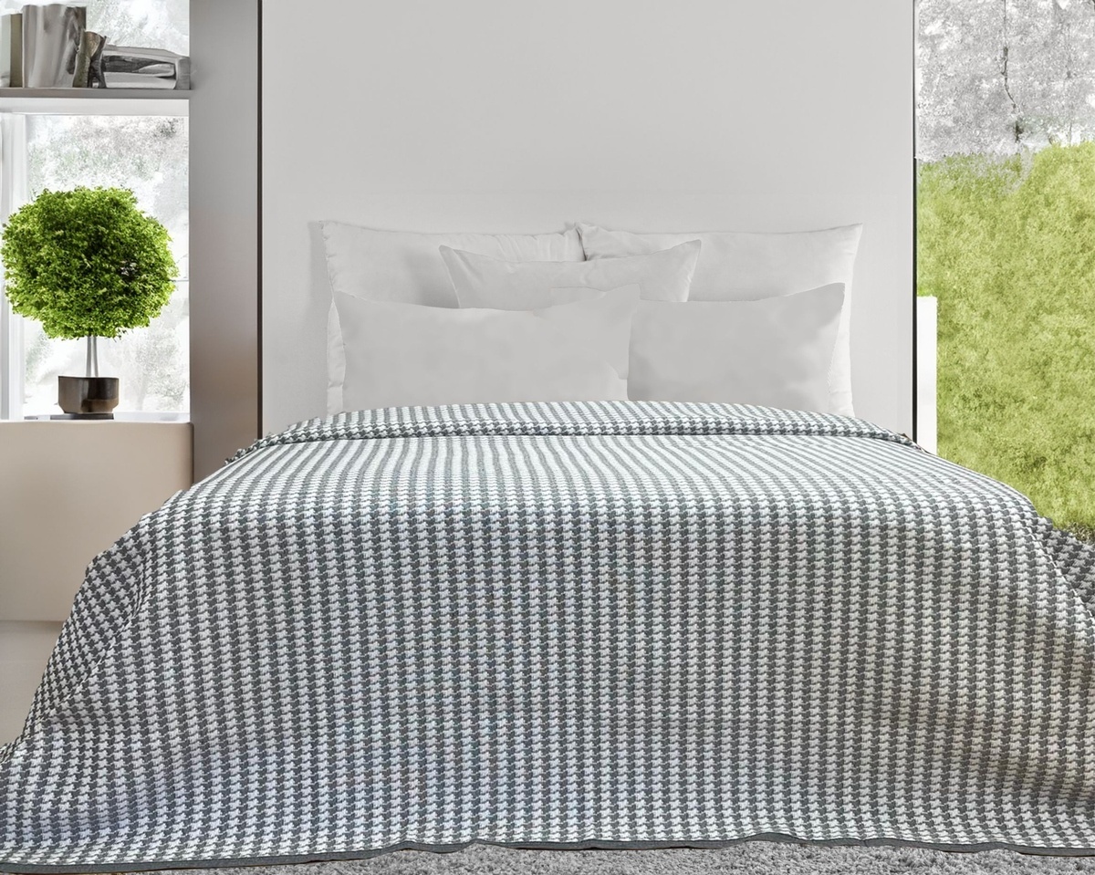 Přehoz na postel, Poul, šedo bílý 240 x 260 cm