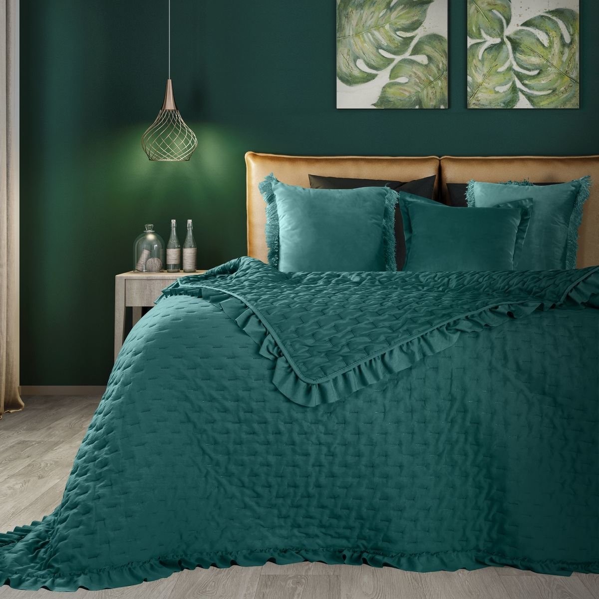 Přehoz na postel s volánky LUBA 220x240 cm tyrkysová Mybesthome