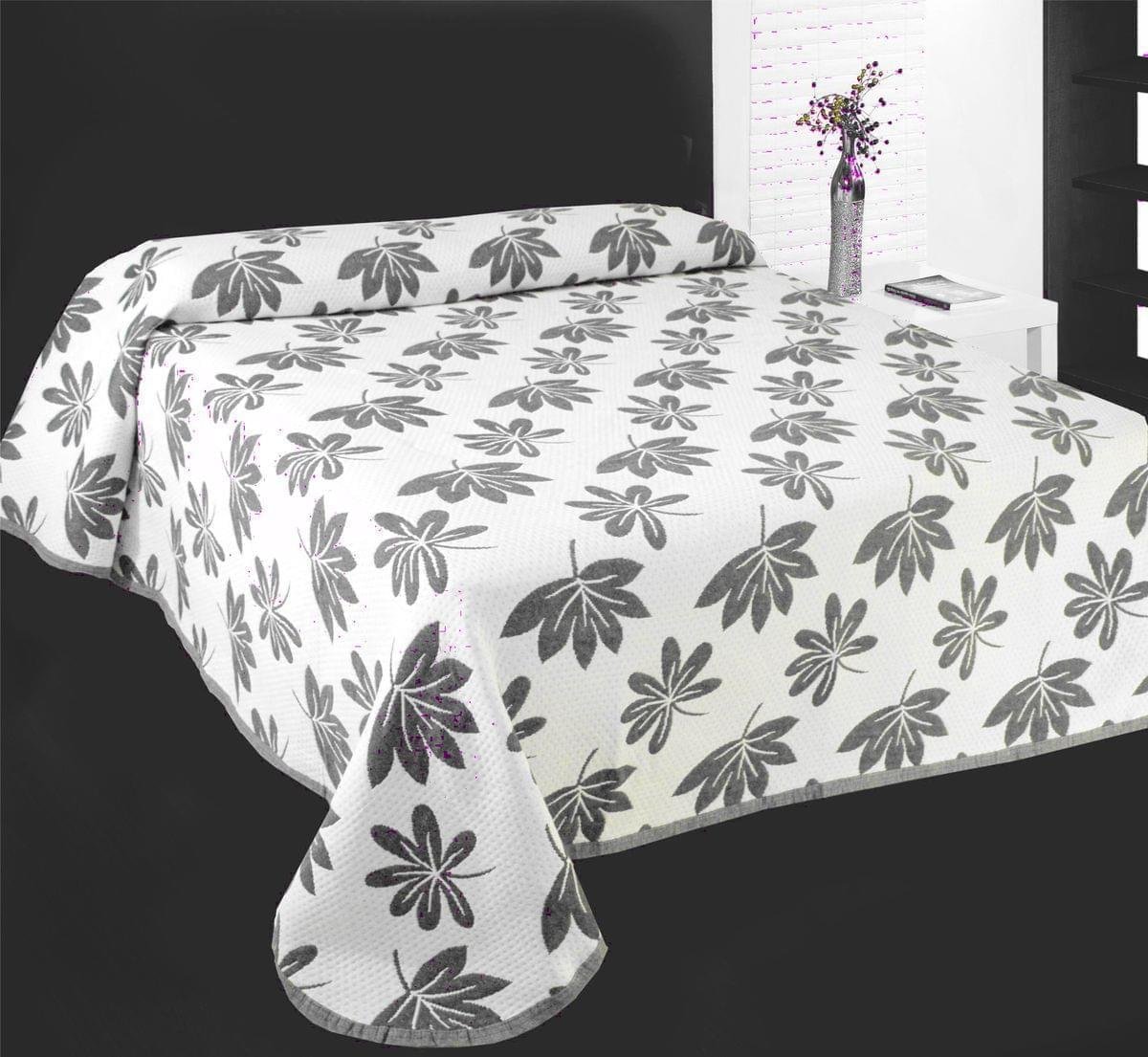 Atraktivní přehoz na postel v decentním vzoru moderních listů se stane jedinečným doplňkem každého bytového interiéru a dotvoří příjemný vzhled v místnosti.