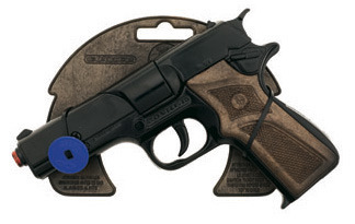 Policejní pistole – kovová černá na kapsliky – osm ran. Velikost pistole 17×12 cm. Vyrobeno ve Španělsku. prečítať celé