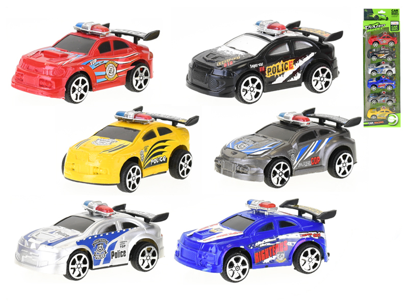 Auto policejní 9cm na zpětný chod 6ks v krabičce