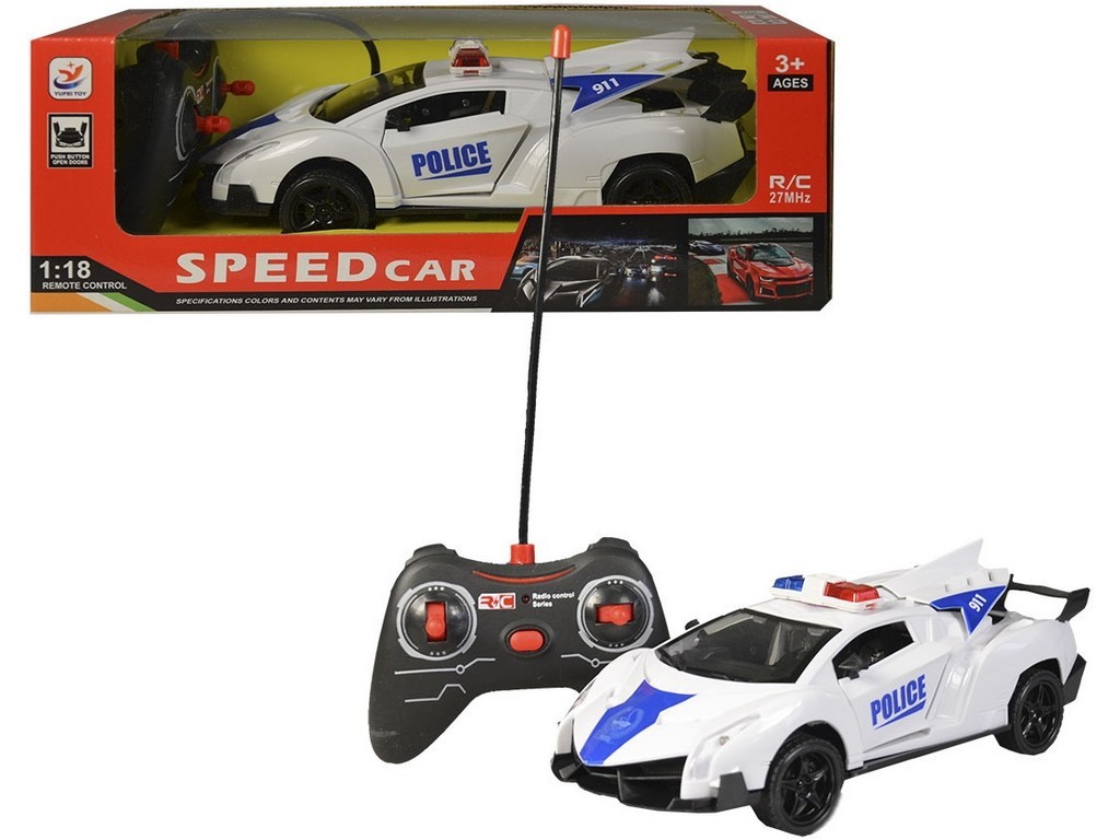 Auto policejní na dálkové ovládání, 23cm, 27MHZ, otvíratelné dveře ovladačem