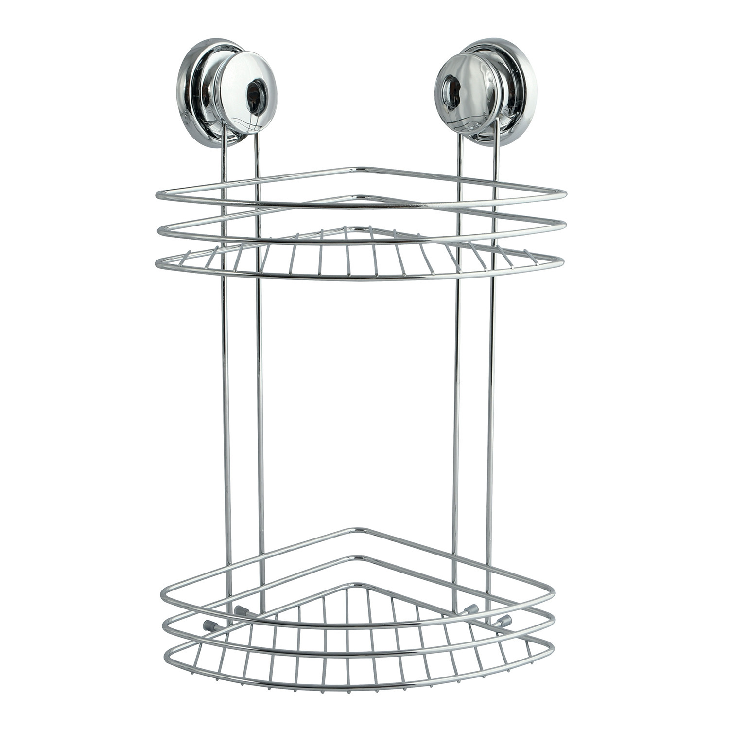 MSV rohová polička s přísavkami MEGA VENTOUSES, do koupelny, 2 patra, lesklá ocel, 21,5 cm