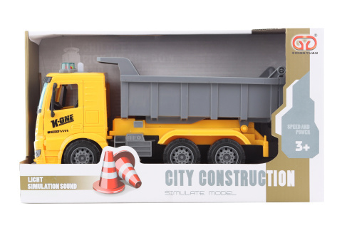 Plastové nákladní auto - sklápěčka na baterie. Pomocí dvou tlačítek umístěných na kabině vydává zvuky jízdy a couvání. Po zmáčnutí auto vyklopí náklad.Baterie 3xAG13 jsou součástí balení. Pomocí manuálního tlačítka lze vyklopit korbu. Baleno v krabici. Rozměry balení cca 32x11,5x18x5 cm. Rozměry...