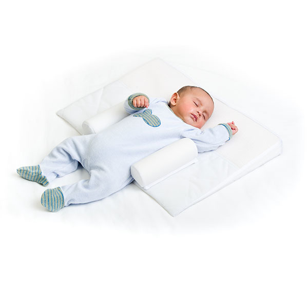 Podložka umožňuje dítěti pohodlně ležet na zádech a zároveň chrání jeho hlavičku před zploštěním, které se může objevit u dětí dlouho ležících na zádech.Spočívá to ve sklonu elastického materiálu s pamětí tvaru a dvou postranních opěrkách přizpůsobitelných suchým zipem.Rozměry:60x41 cm