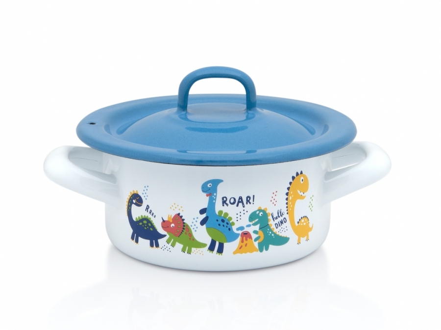 Metalac Dino, smaltovaný kastrol s poklicí 12 cm, 0,75 l Krásné smaltované nádobí pro ty nejmenší členy vaší domácnosti, ve kterém mohou malí caparti nejen cvičit vaření ve své dětské kuchyňce, ale mohou vám asistovat i při vašem skutečném vaření. Nádobí je ozdobeno veselými a moderními...