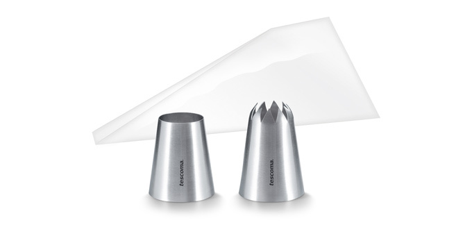 Vynikající pro přípravu kroket a pusinek, vhodná i pro dekorování a plnění pokrmů. Trysky z prvotřídní nerezavějící oceli jsou vhodné do myčky, sáčky jsou vyrobeny z odolného plastu. Jako náhradní používejte Zdobicí sáčky DELÍCIA 50 cm, 10 ks (kód 630469). Recepty na krokety a pusinky jsou...