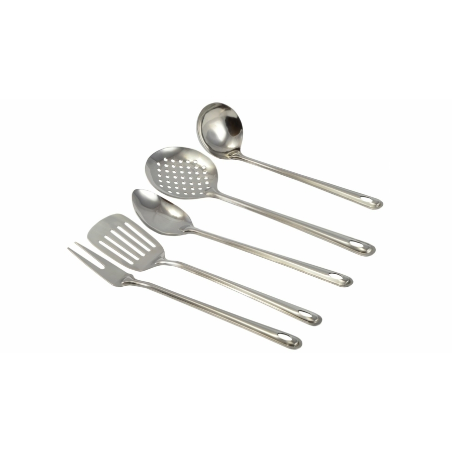 Celonerezová sada piatich kusov kuchynského náradia je ideálnym pomocníkom pre každú domácnosť. Vďaka možnosti zavesenia sú nástroje vždy po ruke a nestratia sa v zásuvke. Perfektne poslúžia pri príprave jedál pre jednotlivca i väčšiu rodinu, pričom ich odolnosť zaručuje dlhú životnosť. Navyše sú nástroje vhodné do umývačky riadu, čo značne uľahčuje ich údržbu. Po umytí stačí náradie osušiť, aby si zachovalo svoj lesk a kvalitu.
