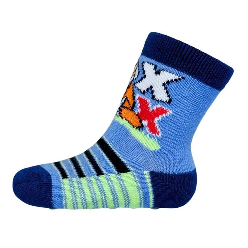 Kojenecké bavlněné ponožky New Baby s ABS. Ponožky jsou pohodlné, díky pružnému lemu nikde netlačí, mají veselé obrázky a krásné barvy. Moderní design sluší všem malým dětem. Ponožky mají spodní silikonovou protiskluzovou vrstvu. Jsou vyrobeny z kvalitního materiálu, který nepouští barvu a drží tvar. Složení: 80% bavlna, 16% polyamid, 4% elastan. Délka ponožky ve velikosti 62 je cca 7-8 cm.