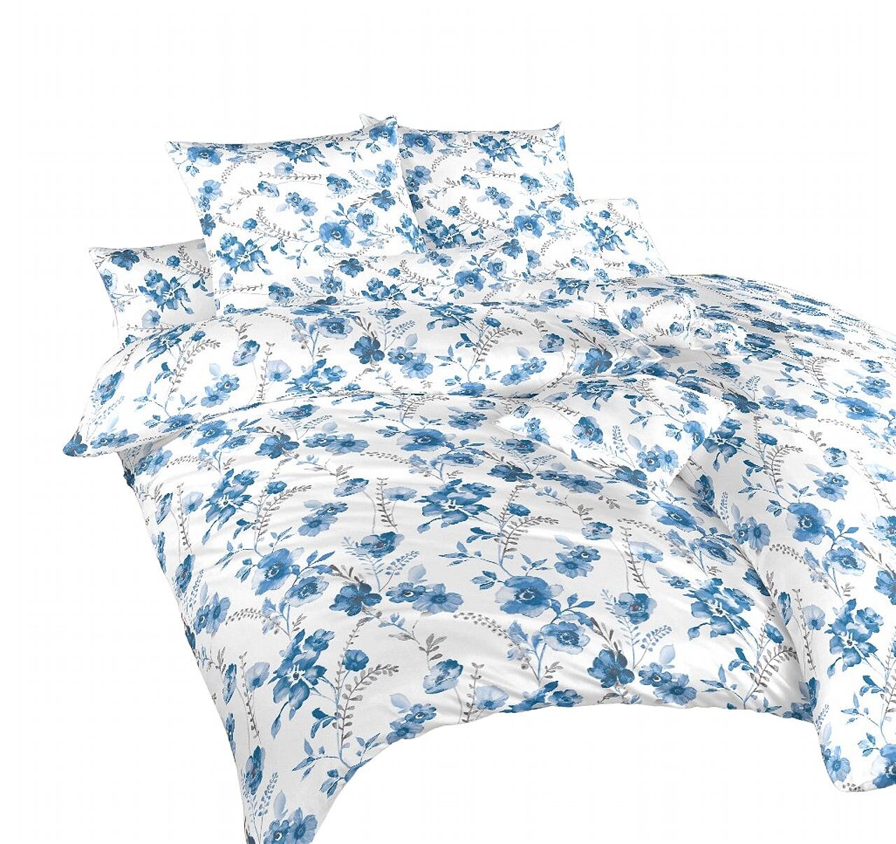 Dadka Povlečení flanel Kvítí modré na bílém 140x200, 70x90 cm