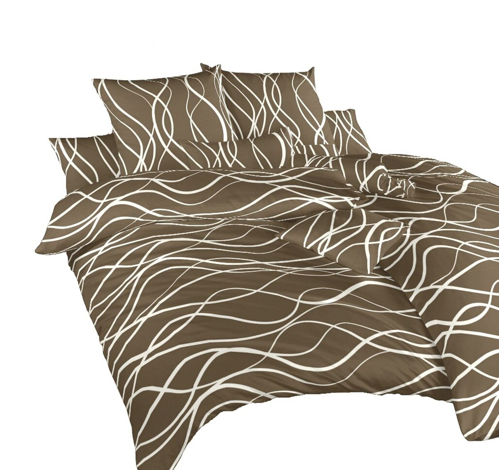 Dadka Povlečení bavlna Vlny banánové na tmavě hnědém 240x220, 2x70x90 cm