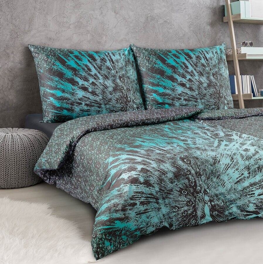 Veba Povlečení satén Geon Páv šedotyrkysová 140x200, 70x90 cm