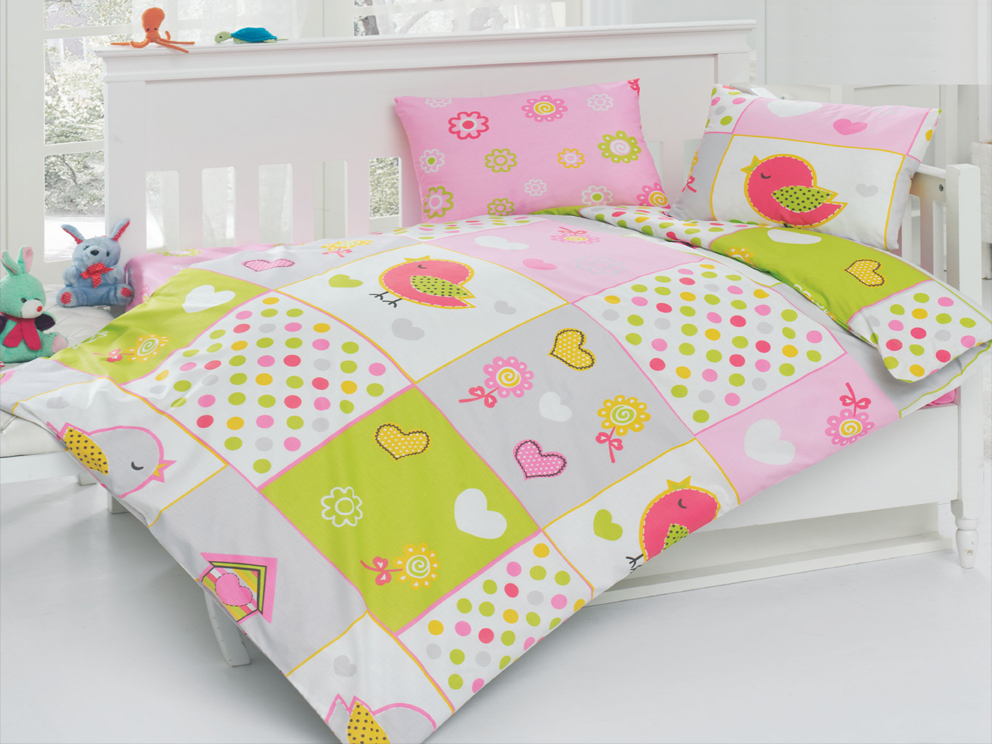 Bavlněné povlečení pro děti PtáčciDětské povlečení Ptáčči, je nejen roztomilé, ale Vaše miminko z něj díky jeho výrazným barvám nespustí očiKytičky, ptačí, budky, ptáčci a srdíčka, to vše v zářivých pastelových barvách růžové, zelené a žlutéSada obsahuje 1 povlak na polštář 1 povlak na...
