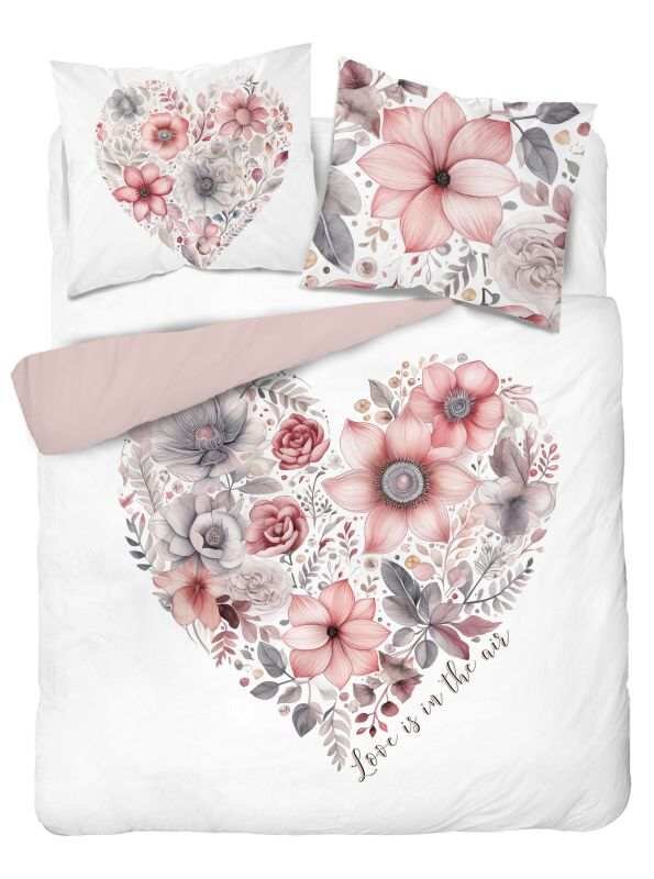 DETEXPOL Francouzské povlečení Květinové srdce Bavlna, 220/200, 2x70/80 cm