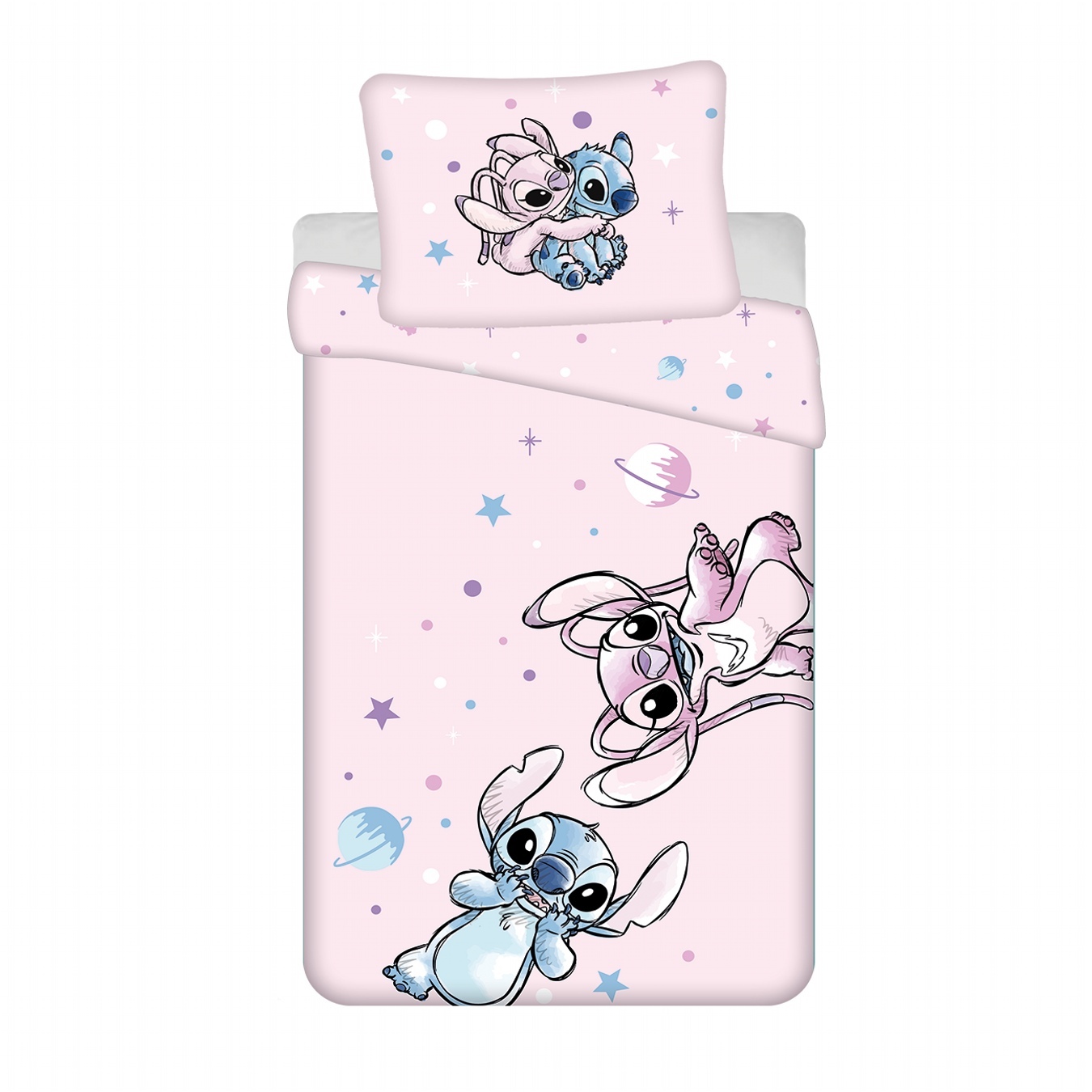 Dětské povlečení Lilo a Stitch Universe Objevte vesmírná dobrodružství s povlečením Lilo a Stitch Universe! Růžové pozadí s postavami Stitche a Angel, doplněné o hvězdy, planety a vesmírné prvky, rozzáří každý dětský pokoj. Povlečení je vyrobeno ze 100% bavlny, která je příjemná na dotek a šetrná...