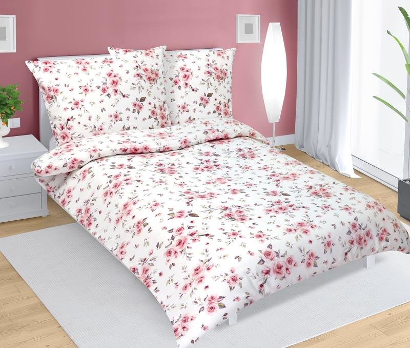 Povlečení flanelové - růžová růže - 140x220, 70x90 cm