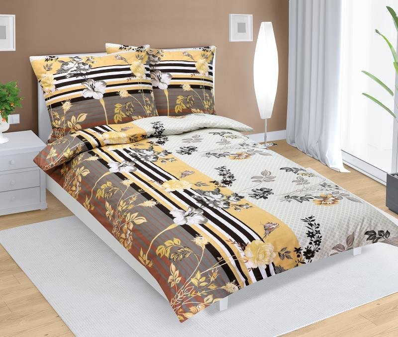 Povlečení bavlněné - šedobéžové květy - 140x220, 70x90