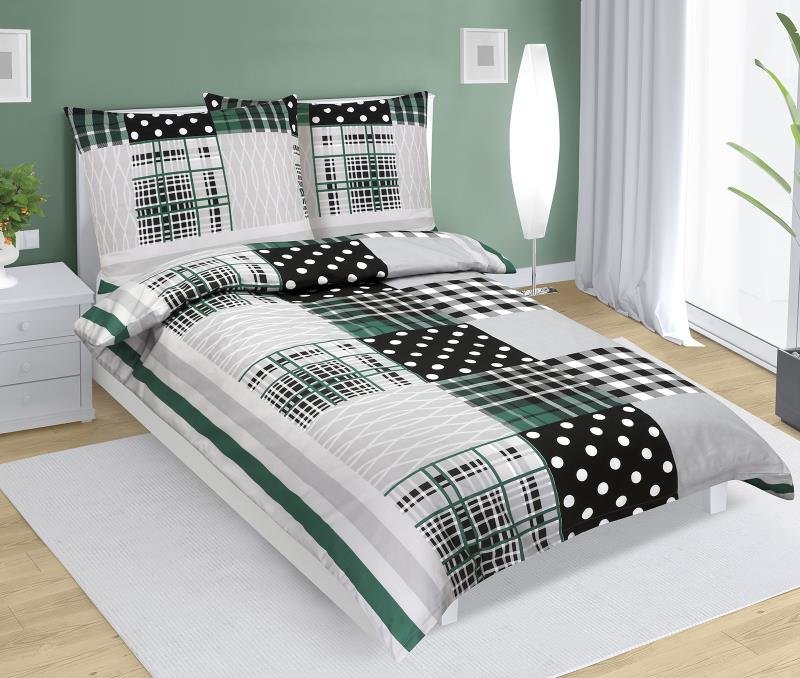 Povlečení bavlněné - zelený patchwork - 140x200, 70x90