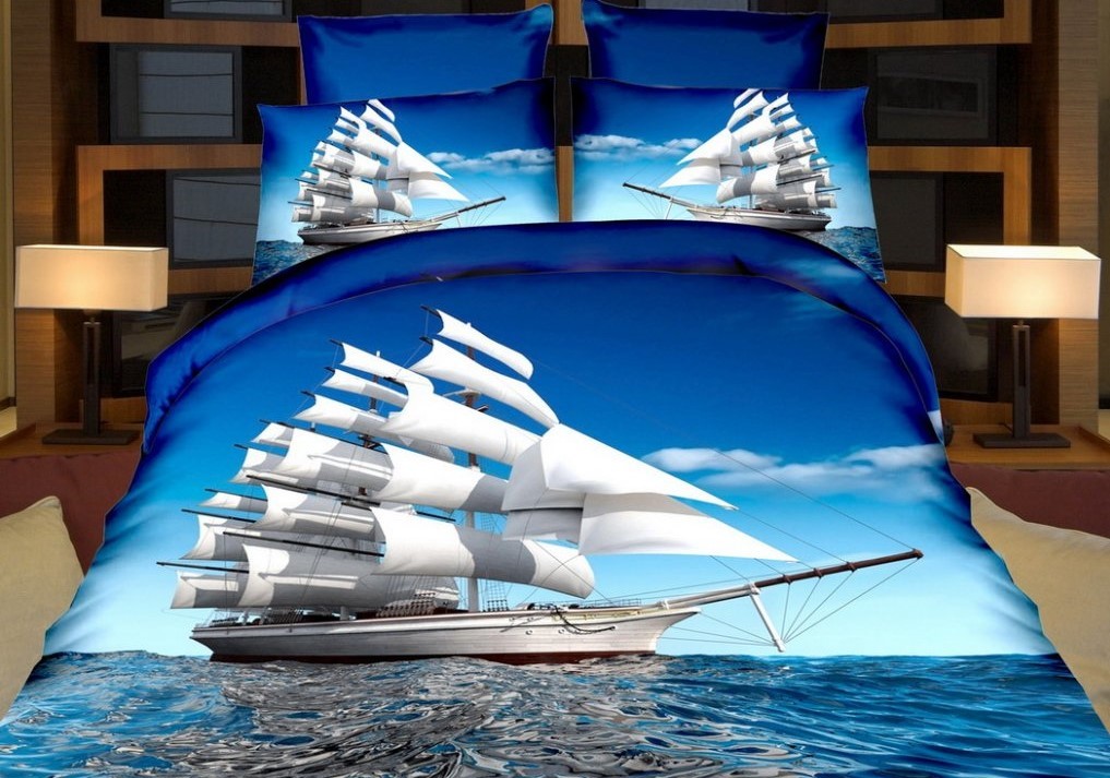 Povlečení 3D PLACHETNICE francouzské povlečení, 1x 200x220 cm, 2x povlak 70x80 cm + dárek MyBestHome