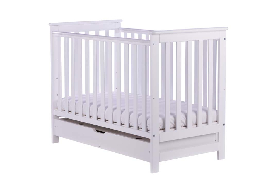 DREWEX Łóżeczko tapczanik LEO DELUX szuflada, barierka biały/biały