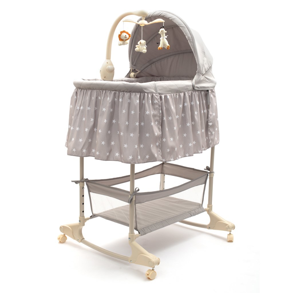 Multifunkční kolébka postýlka pro miminko New Baby hvězdičky šedá