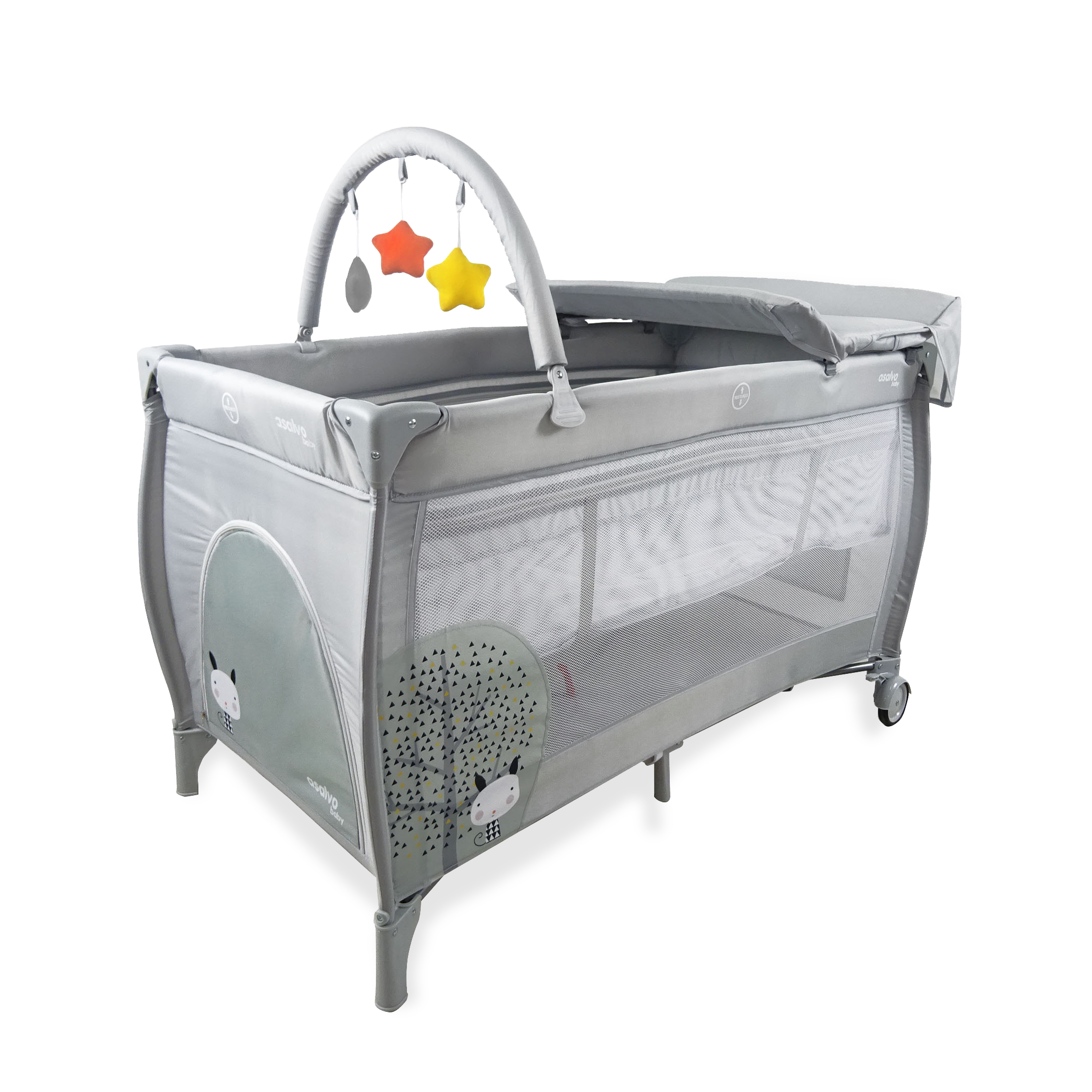 Asalvo COMPLET postýlka, grey nordic(závěsné dno, hrazda, zip a přebalovací pult)