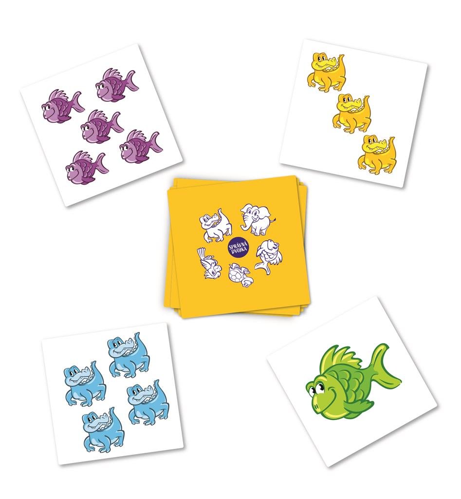 - Obsahuje karty so zvieratkami v rôznych farbách a počtoch