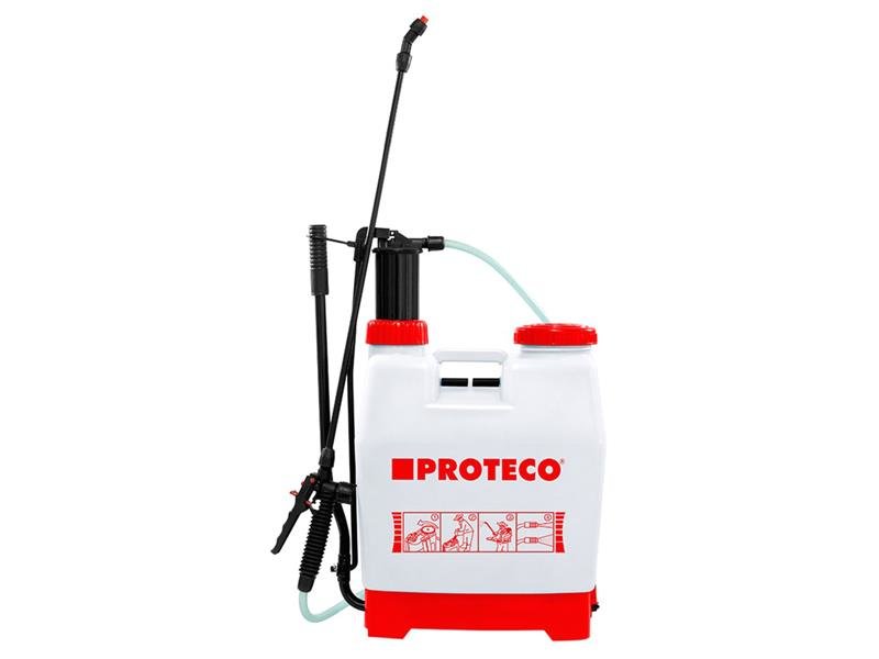 Zádový postřikovač 20l je vysoce kvalitním tlakovým postřikovačem mimořádně vhodným pro pohodlné rozprašování kapaliny ve velkých množstvích. Stává se tak ideálním pomocníkem pro péči o rostliny na velkých zahradách, o ovocné stromy a vinnou révu. Dále je možno s postřikovačem PROTECO ochránit trámy, prkna a další dřevěné materiály před červotoči. Díky kvalitní sestavě těsnění se tlakování postřikovače provádí velmi jednoduše pomocí ovládací páky. Prodlužovací tyč postřikovače umožňuje komfortní postřik i v těžkopřístupných místech. Zároveň lze kuželový nástavec postřiku vyměnit za plochý, čímž lze získat ideálního pomocníka pro postřik větších ploch. Díky filtru v plnicím otvoru nemohou do nádoby vniknout žádné nečistoty, trysky tak zůstávají čisté.
