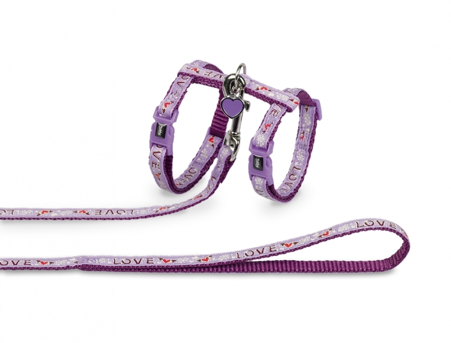 Nobby Love fialový set postroje a vodítka s přívěskem
